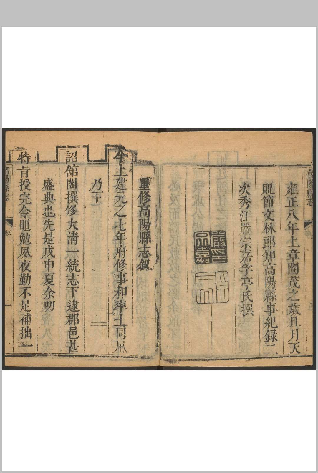 高阳县志 六卷 李其旋纂 严宗嘉修.清雍正8年重修