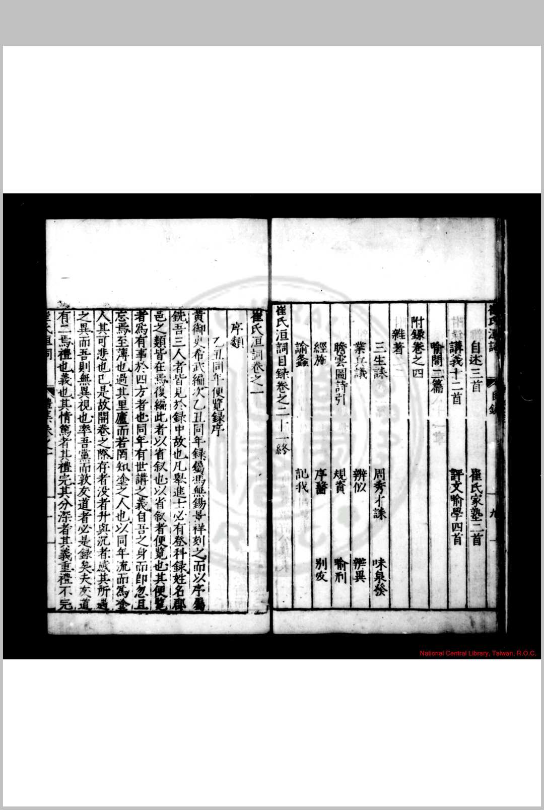 崔氏洹词 (明)崔铣撰 明嘉靖甲寅(三十三年, 1554)池州知府周镐刊本