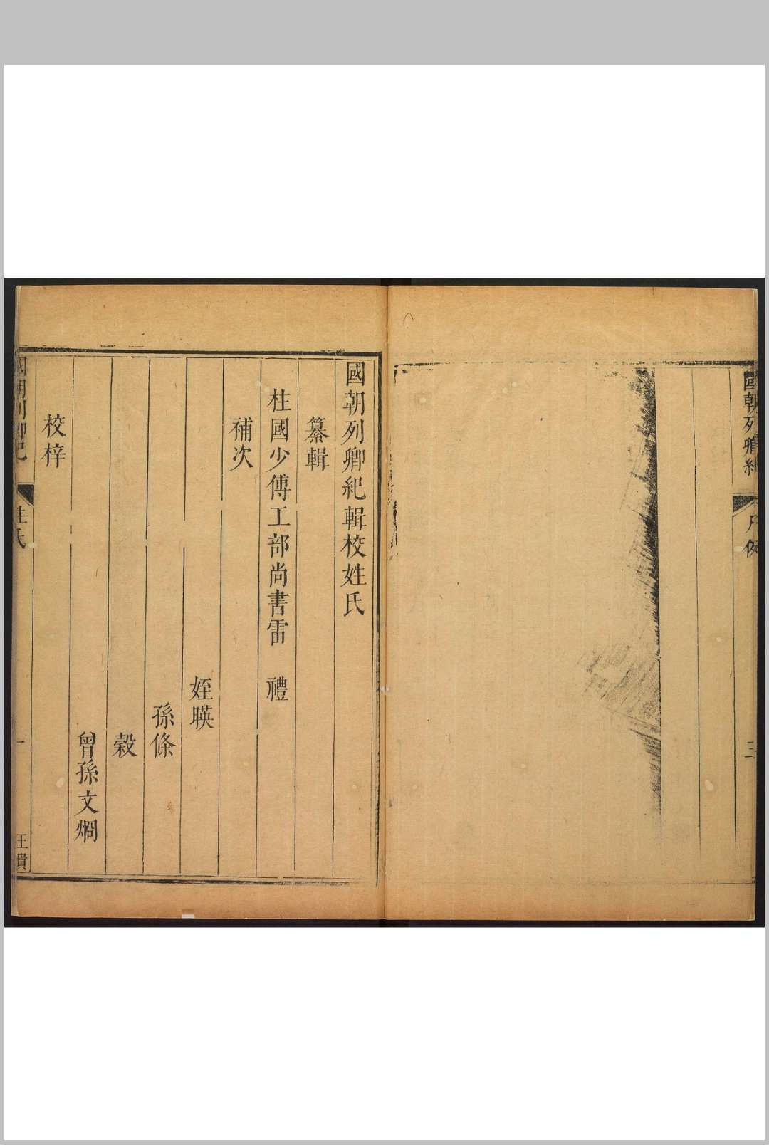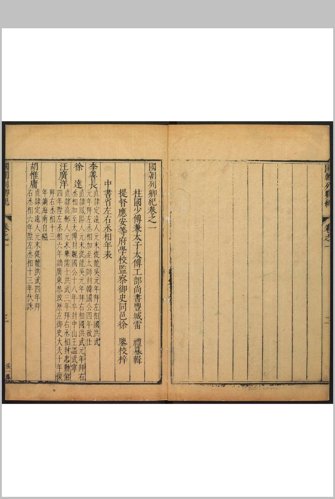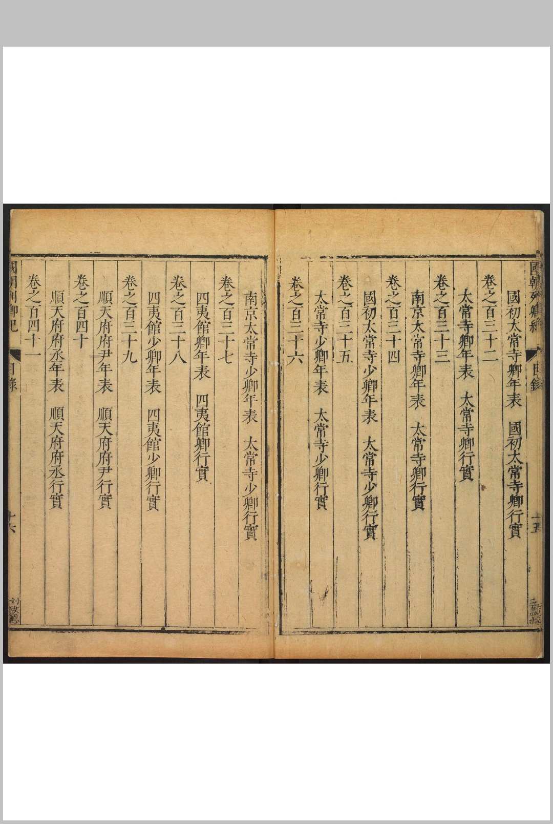 《国朝列卿纪》,明代嘉靖年间工部尚书雷礼编纂。共一百六十五卷。万历年间,徐鉴将其完整刊刻。该书所记人物上至洪武,下迄嘉靖,是雷礼最具代表性的一部作品,也是明中后期私修史浪潮中较早的传记类著作。该书保存了大量珍贵史料并进行体例上的创新,将年表与行实相结合,以传记为主,事纪为辅。