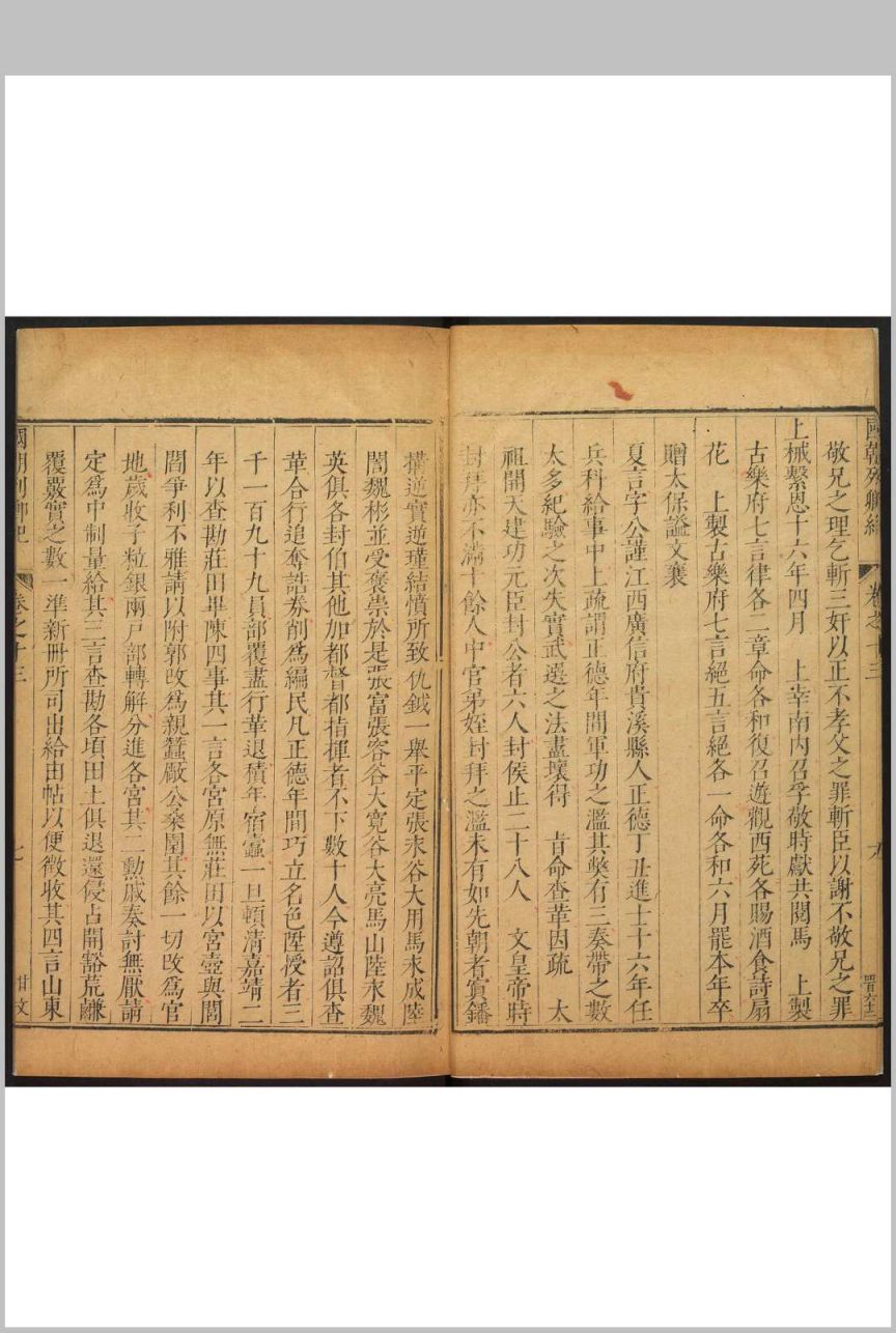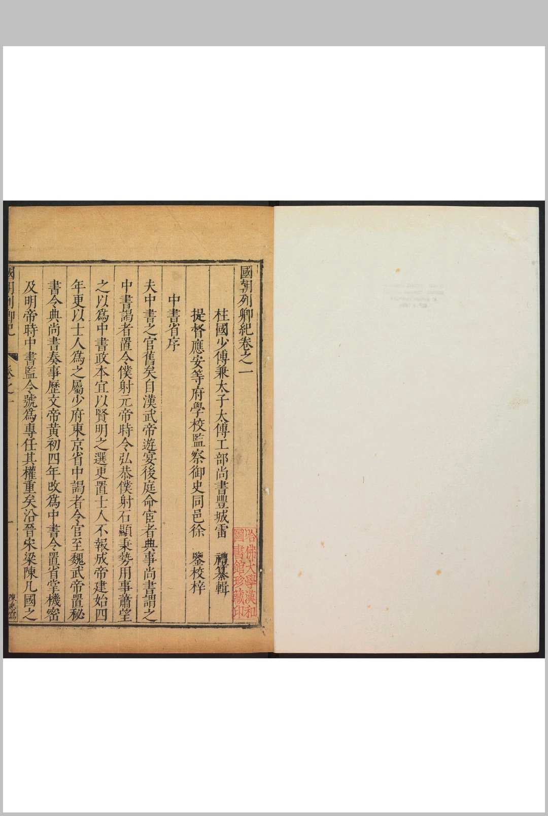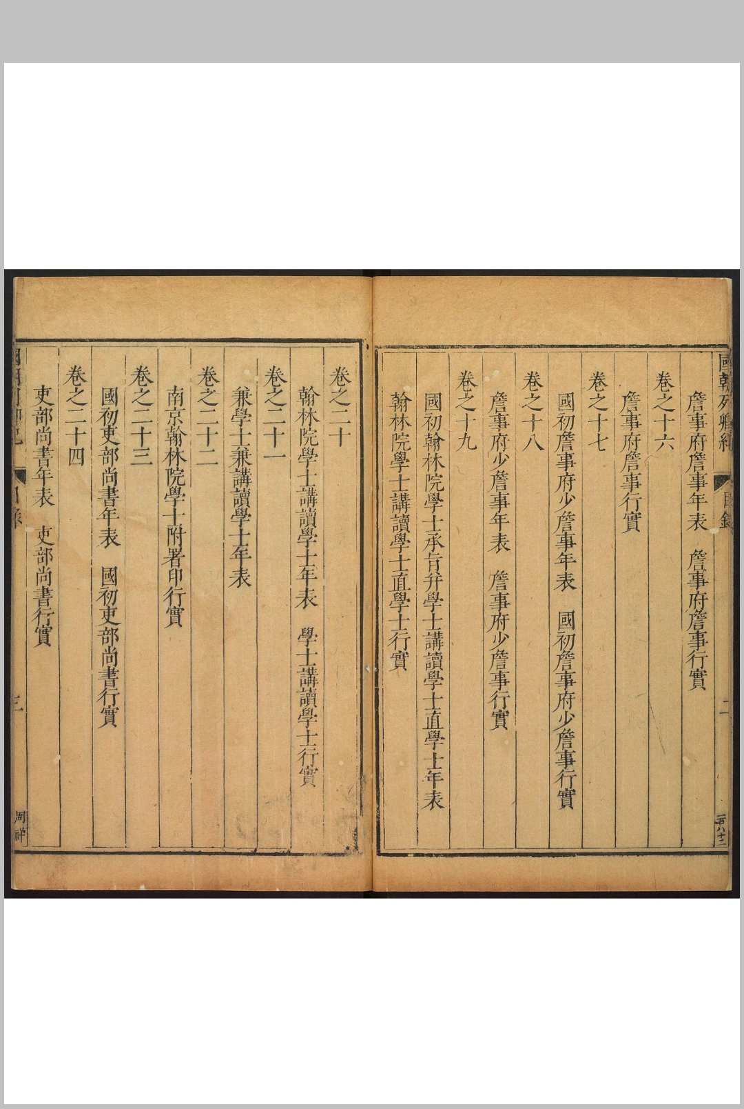 《国朝列卿纪》,明代嘉靖年间工部尚书雷礼编纂。共一百六十五卷。万历年间,徐鉴将其完整刊刻。该书所记人物上至洪武,下迄嘉靖,是雷礼最具代表性的一部作品,也是明中后期私修史浪潮中较早的传记类著作。该书保存了大量珍贵史料并进行体例上的创新,将年表与行实相结合,以传记为主,事纪为辅。