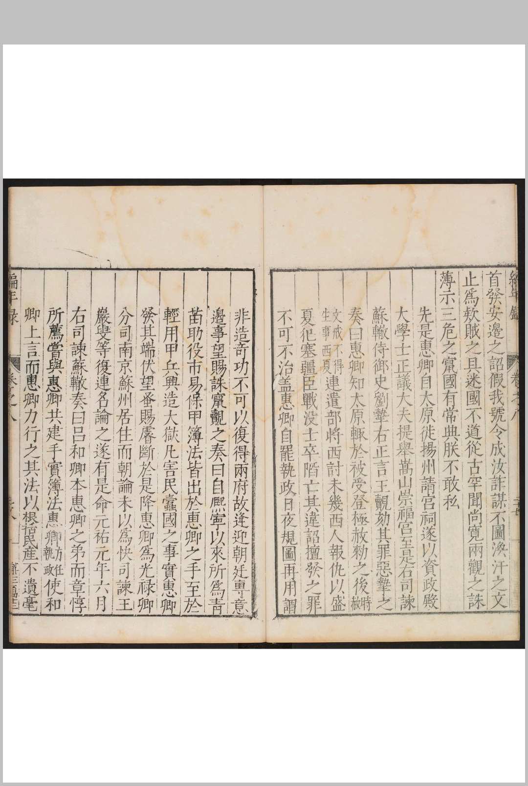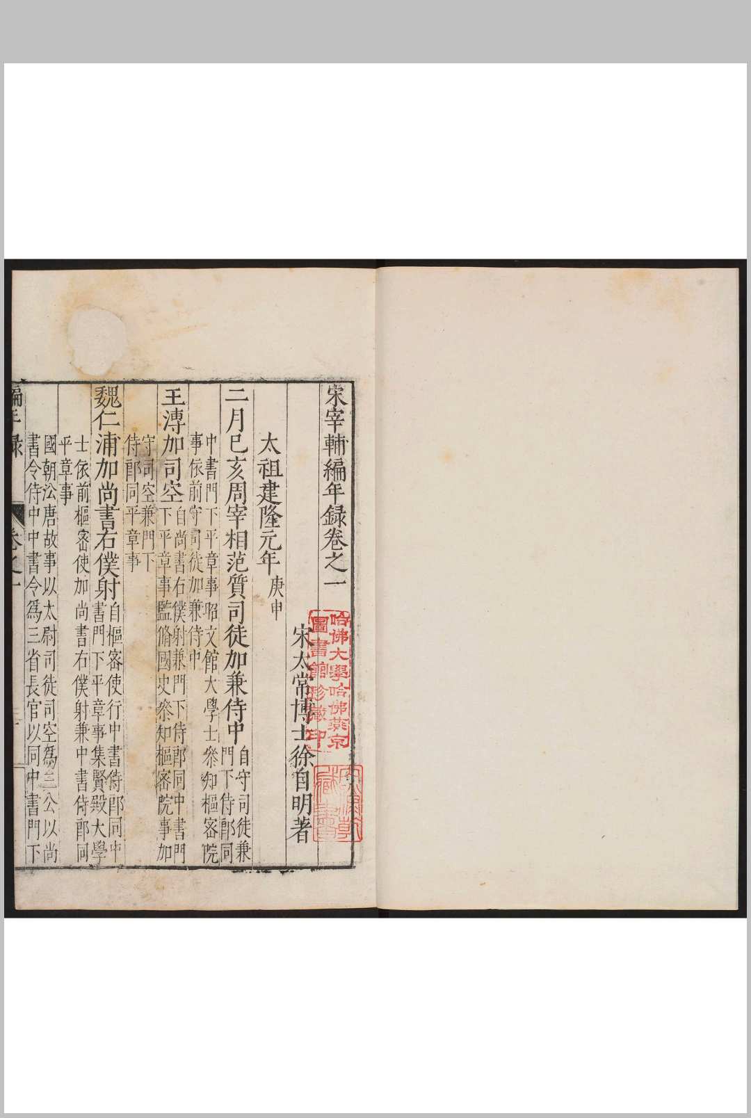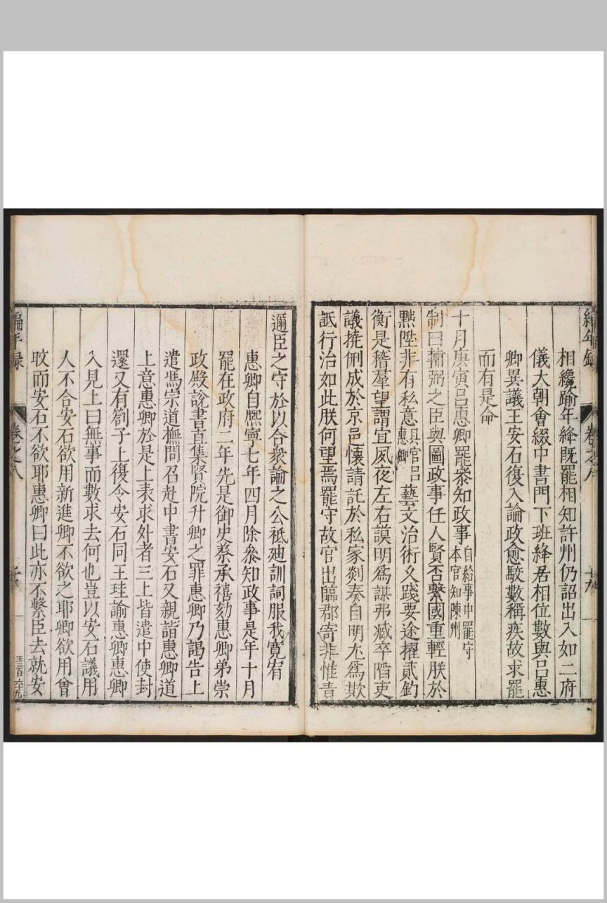 记录宋建隆元年(960年)至宋嘉定八年(1215年)二百五十多年间中书、枢密二府大臣的任免情况。宋代官制是以中书、枢密为二府,设宰辅之职,所以,以平章事、参知政事、枢密使、知枢密院事至签书枢密院事,共数以千计的宰辅,都详记其拜罢之由,各大臣的仕履及锁院制词。叙事详实,内容丰富。在叙述一个宰辅的任免时,往往博采诸家之说,并列几种记载。