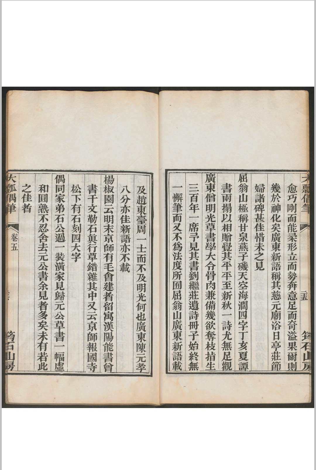 大瓢偶笔 八卷 总碑目 一卷 铁函斋书跋 四卷 杨宾撰 杨霈编 粤东粮道署校刊本, 清道光丁未27年