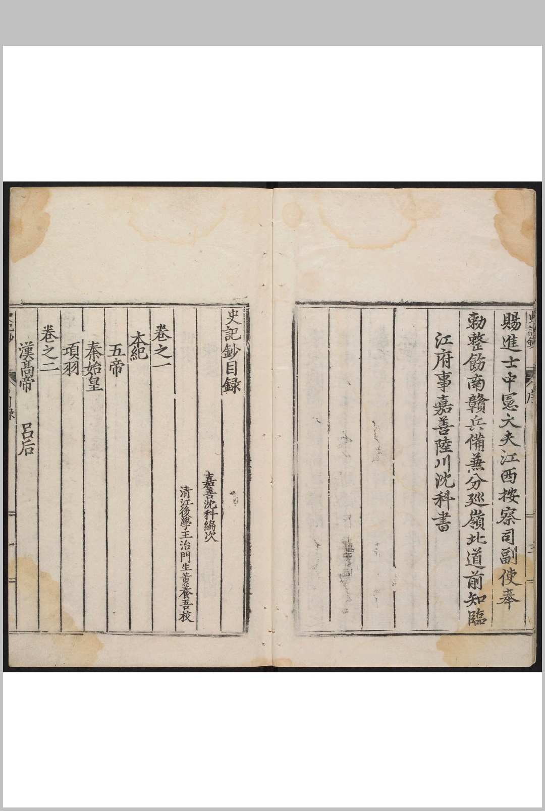 史记钞 20卷 沉科编选 黄养吾校 沉氏自刋本, 明嘉靖36年