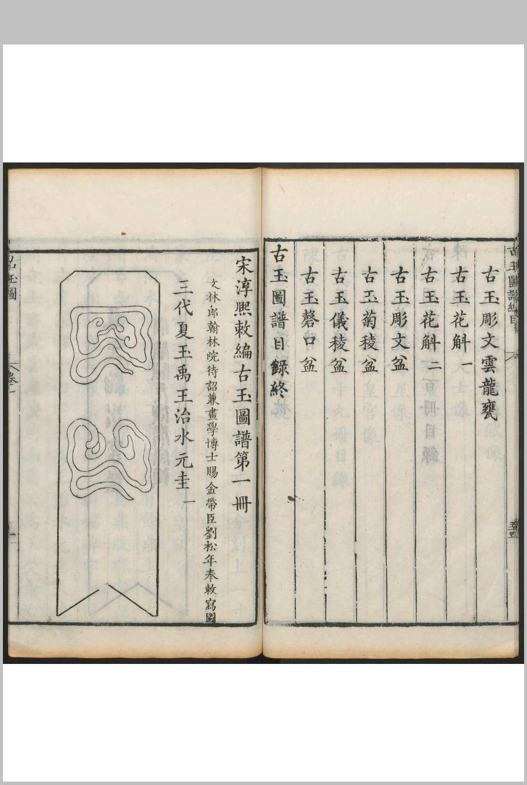 宋淳熙敕编古玉图谱 一百卷 龙大渊等奉敕编纂. 江春康山草堂, 清乾隆44年