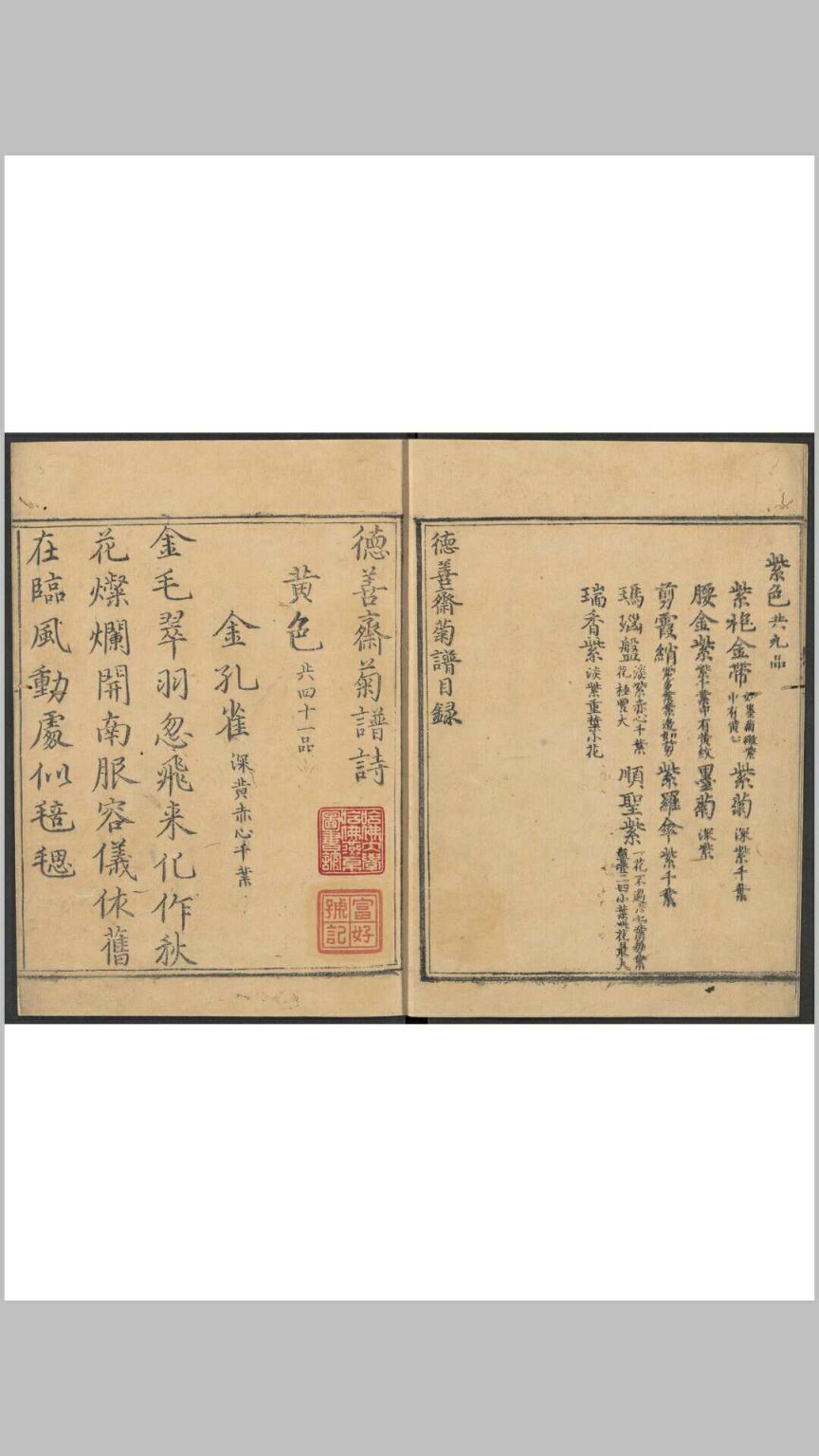 德善斋菊谱诗 不分卷, 附录 一卷 朱有爌撰 明刊本