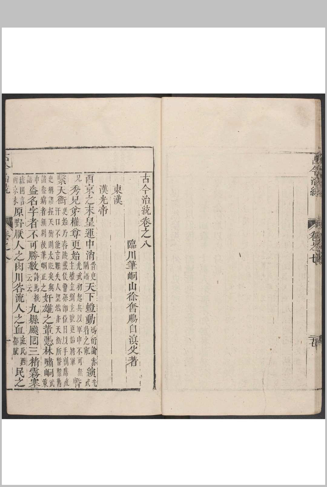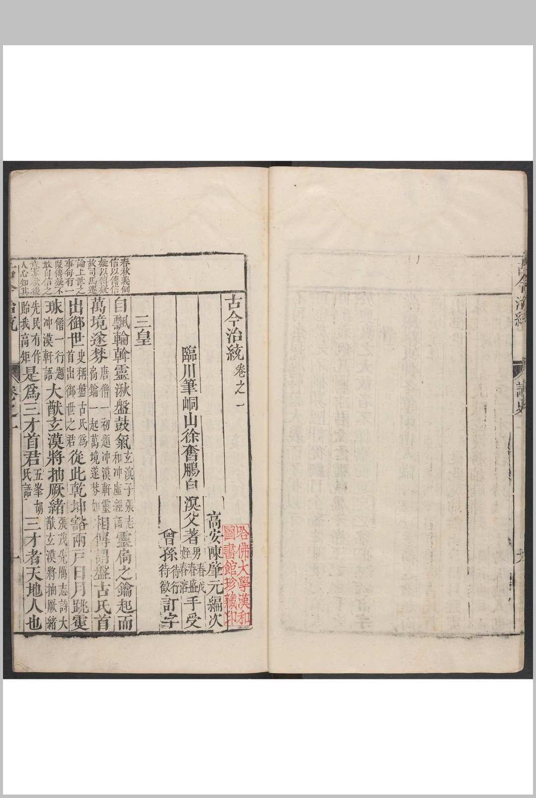 古今治统 二十卷 徐奋鹏撰 陈肇元编次 槐柳斋, 清乾隆丁卯 12年