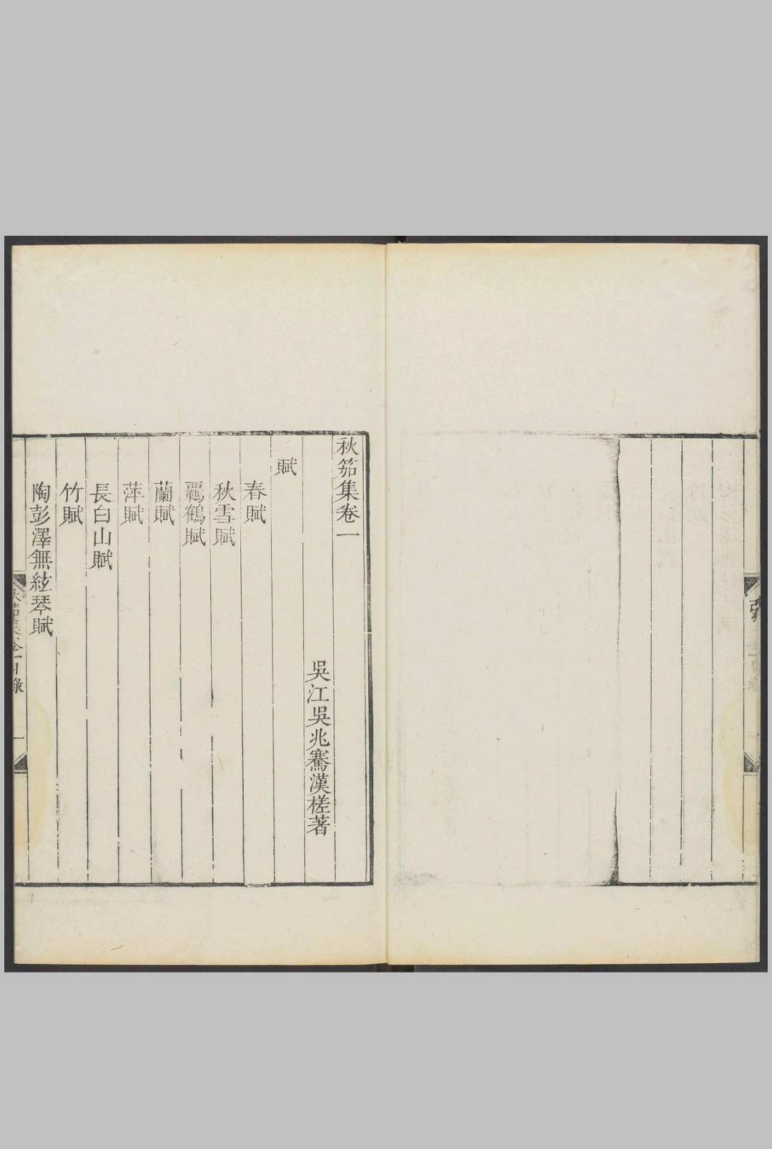 秋笳集8卷.清.吴兆骞撰.清雍正4年 吴江吴桭臣衍厚堂刊本
