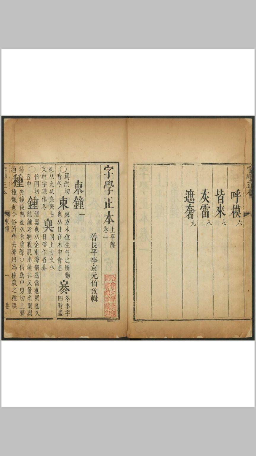 字学正本 五卷 李京撰 高梦说, 清康熙8年