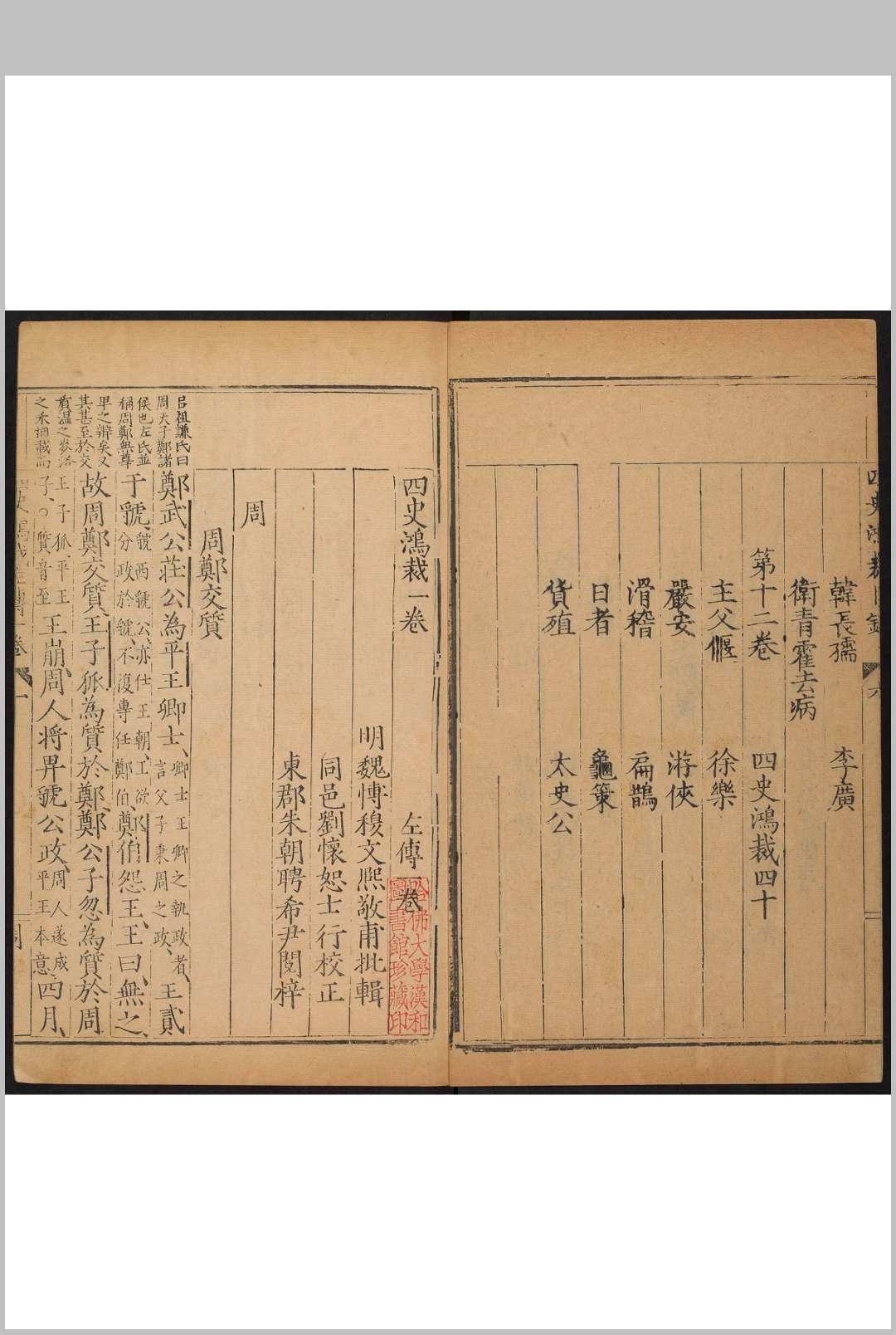 四史鸿裁 四十卷 穆文熙批辑 刘怀恕校正.山西 朱朝聘, 明万历18年