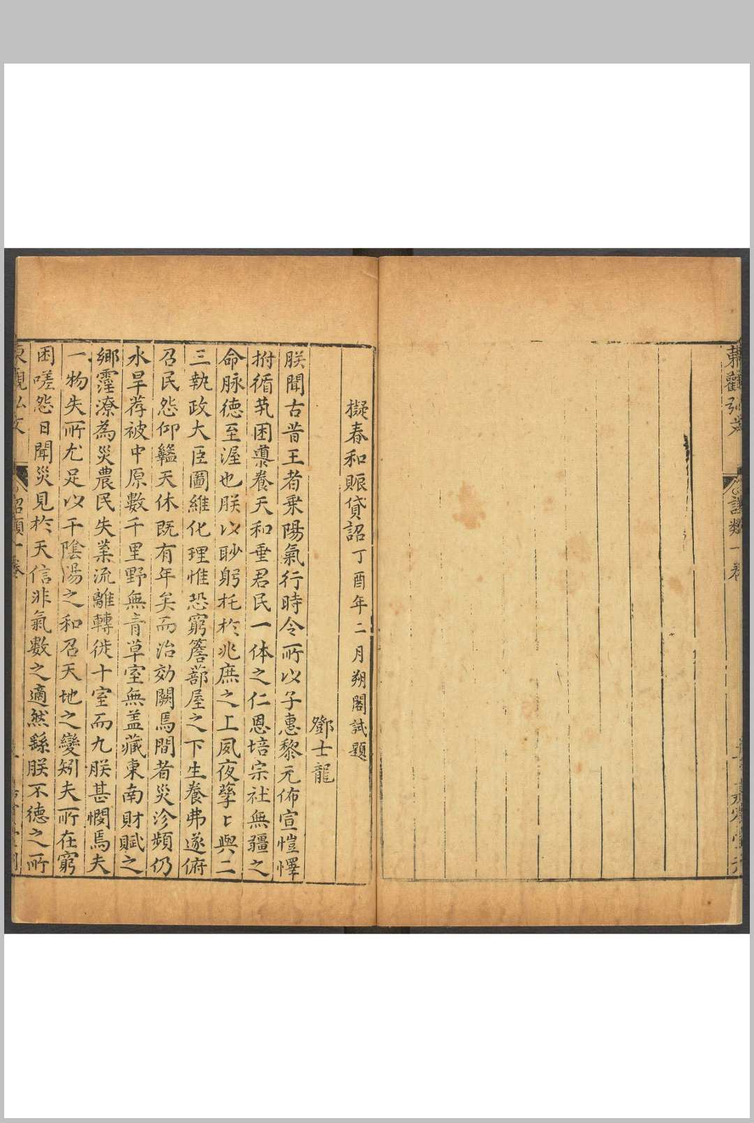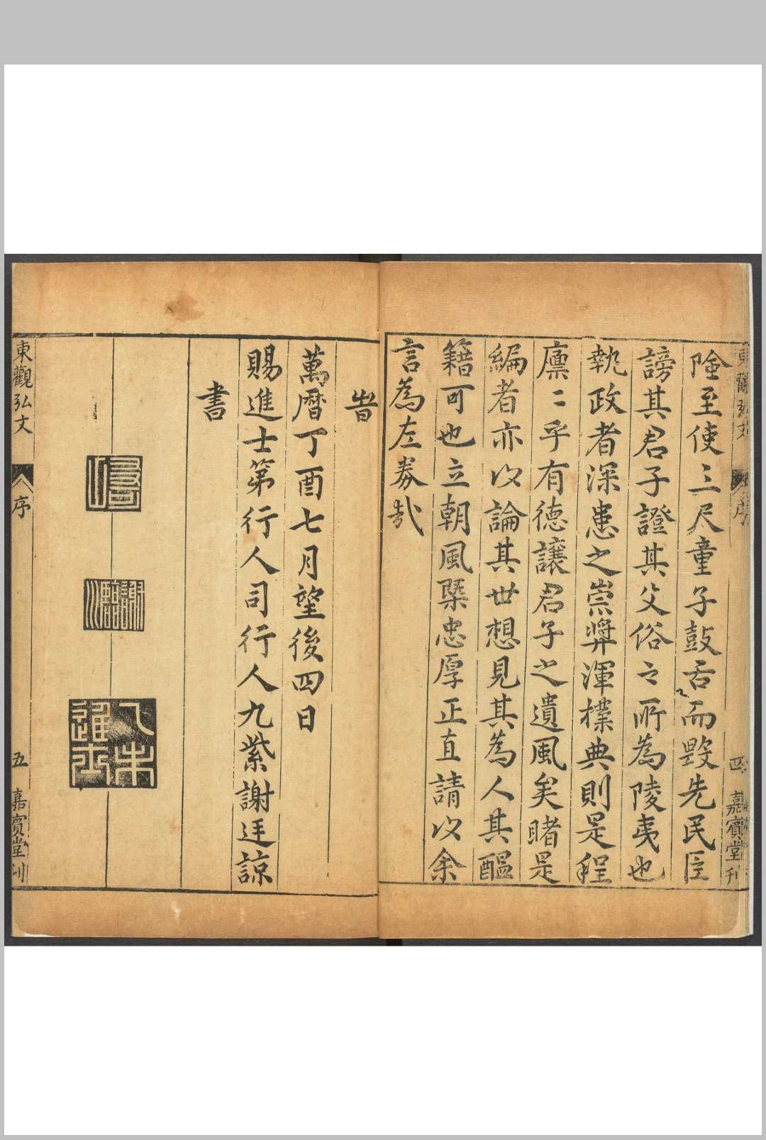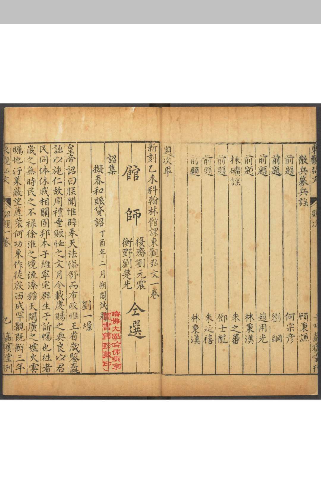 新刻乙未科翰林馆课东观弘文 十卷 刘元震, 刘楚先仝选 嘉宾堂, 万历丁酉