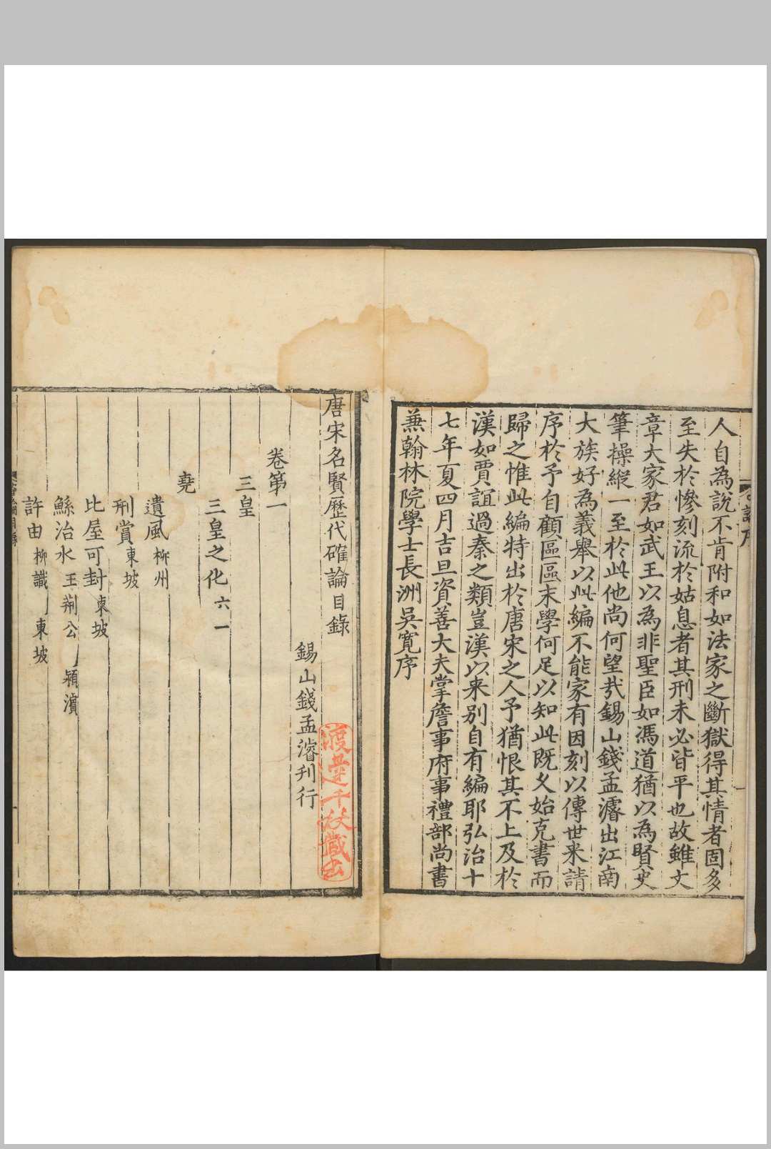 唐宋名贤历代确论 一百卷 [不著编者]钱孟濬, 明弘治17年