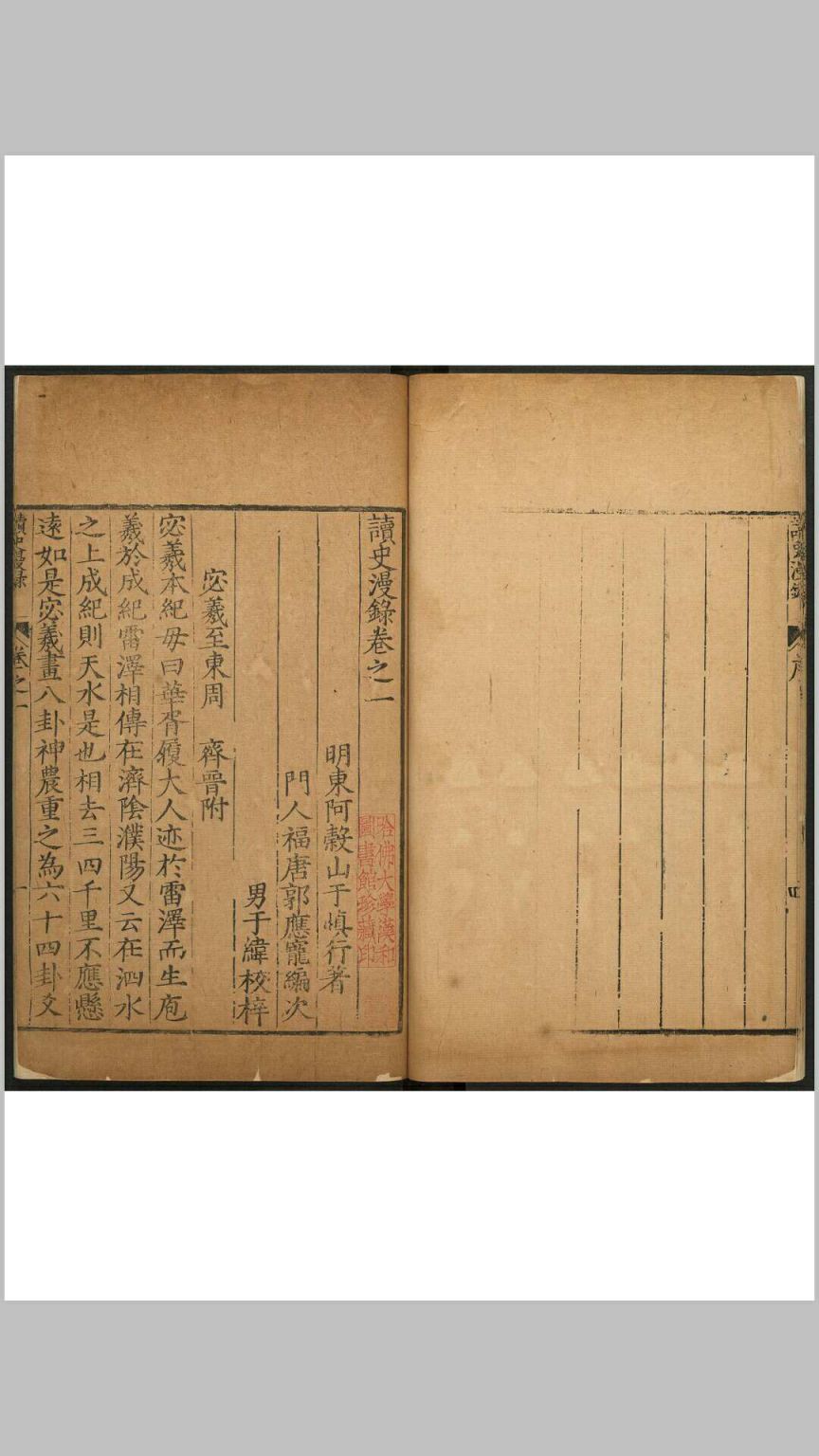读史漫录 14卷 于慎行撰 郭应宠编次 于纬, 明万历42年