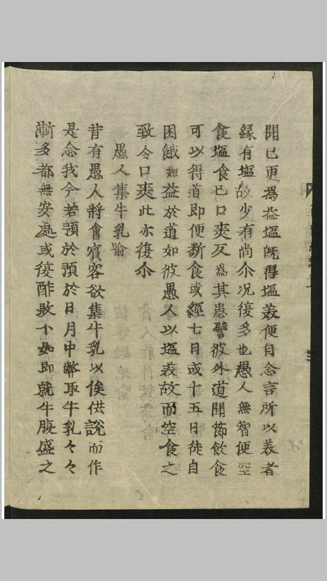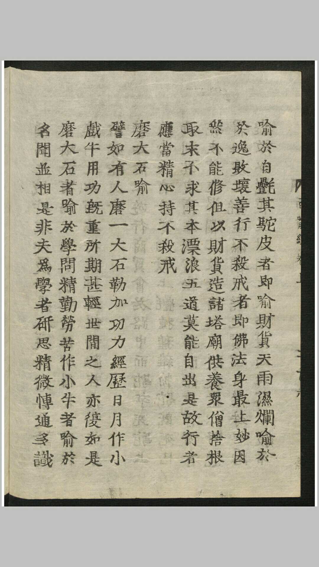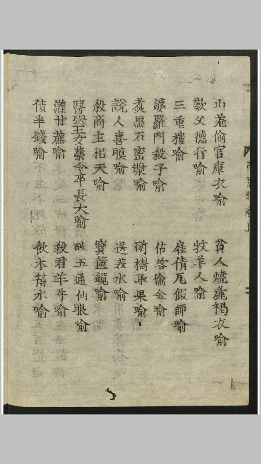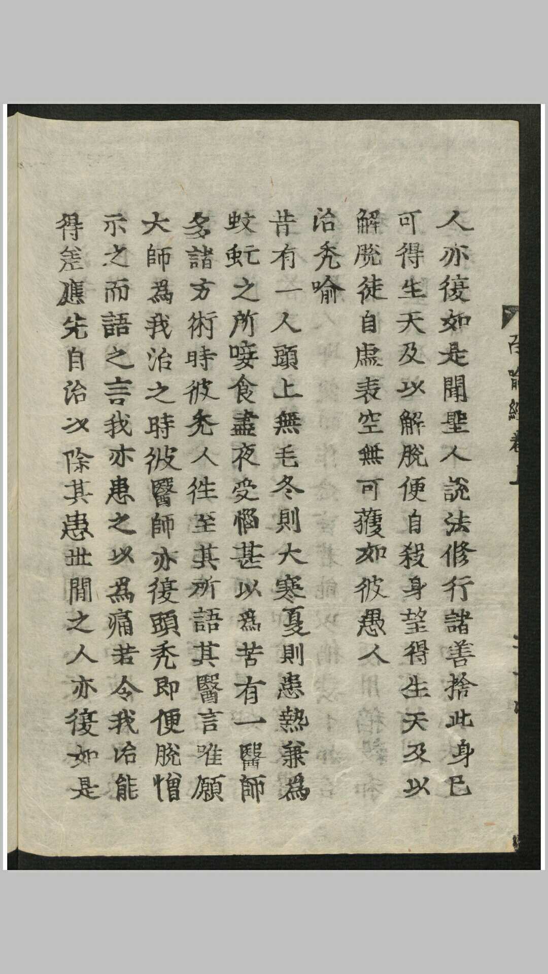 《百喻经》,全称《百句譬喻经》,是古天竺僧伽斯那撰,南朝萧齐天竺三藏法师求那毗地译。《百喻经》称“百喻”,就是指有一百篇譬喻故事,但现存的譬喻故事只有九十八篇;之所以称之为“百”,有两种说法,一就整数而言,二是加上卷首引言和卷尾偈颂共为百则。《百喻经》全文两万余字,结构形式单一,每篇都采用两步式,第一步是讲故事,是引子,第二步是比喻,阐述一个佛学义理。它从梵文译成汉文,距今已经有一千五百多年的历史。