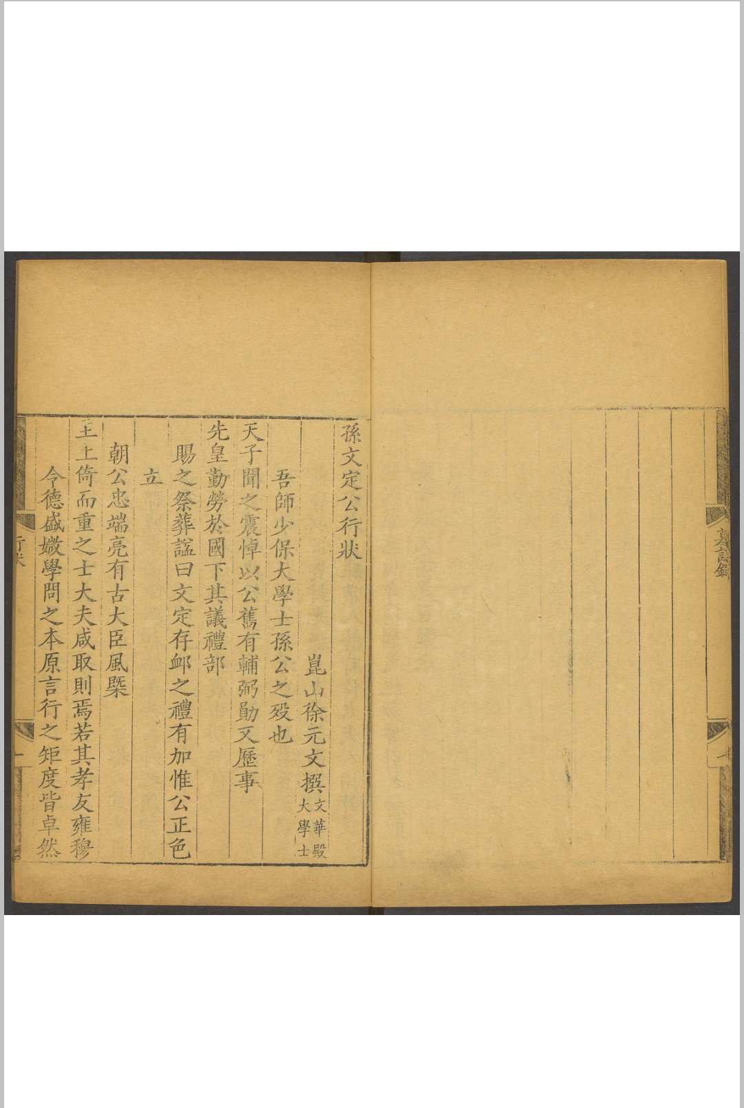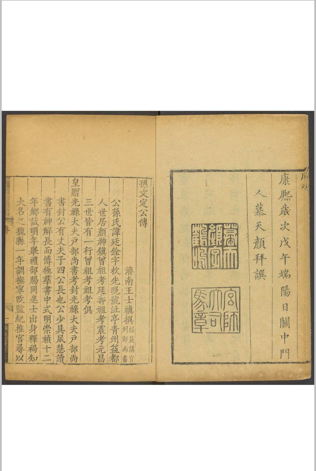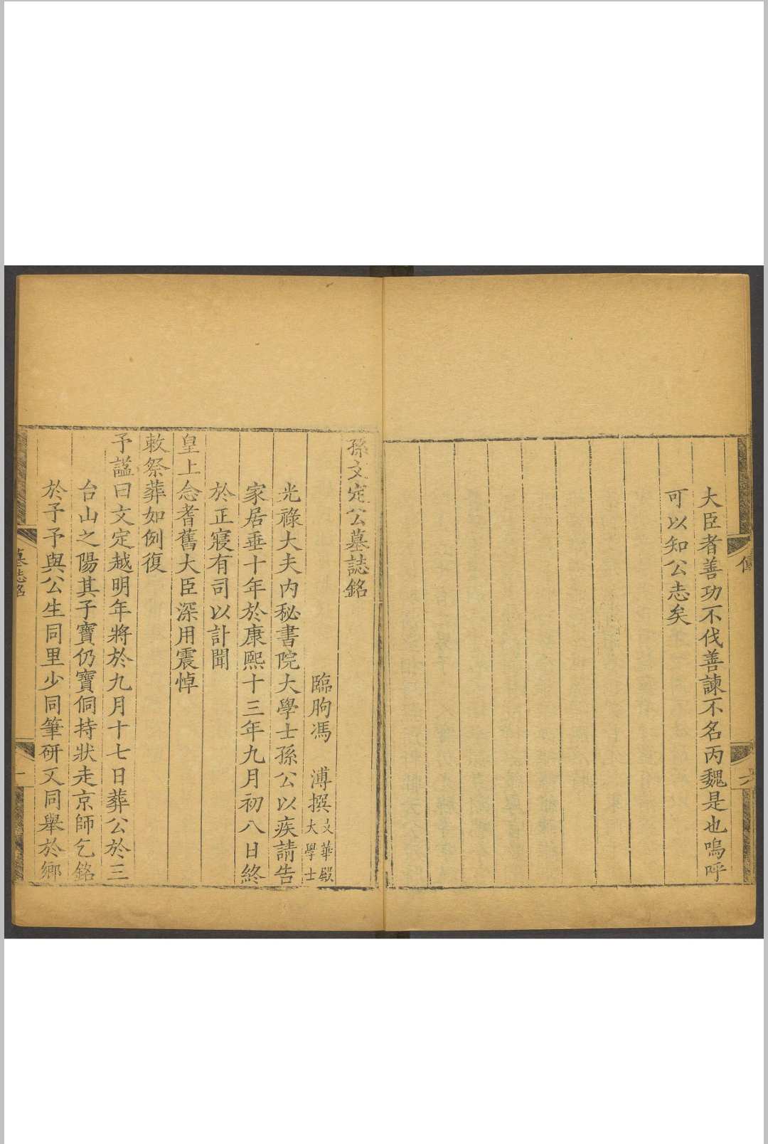 孙廷铨(1613年~1674年),初名廷铉,字枚先,山东益都(今山东博山)人。明崇祯十三年(1640年)庚辰科进士。入清后,官至秘书院大学士。康熙十三年(1674年)病卒,谥文定。著有《南征纪略》、《颜山杂记》、《汉史亿》、《琴谱指法省文》等。
