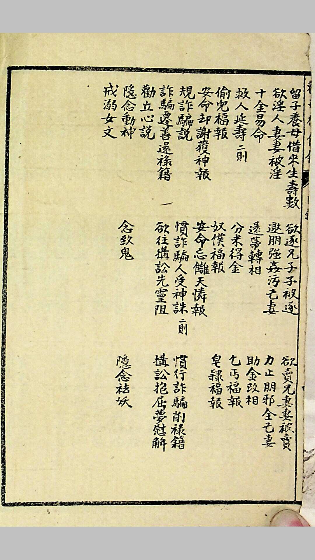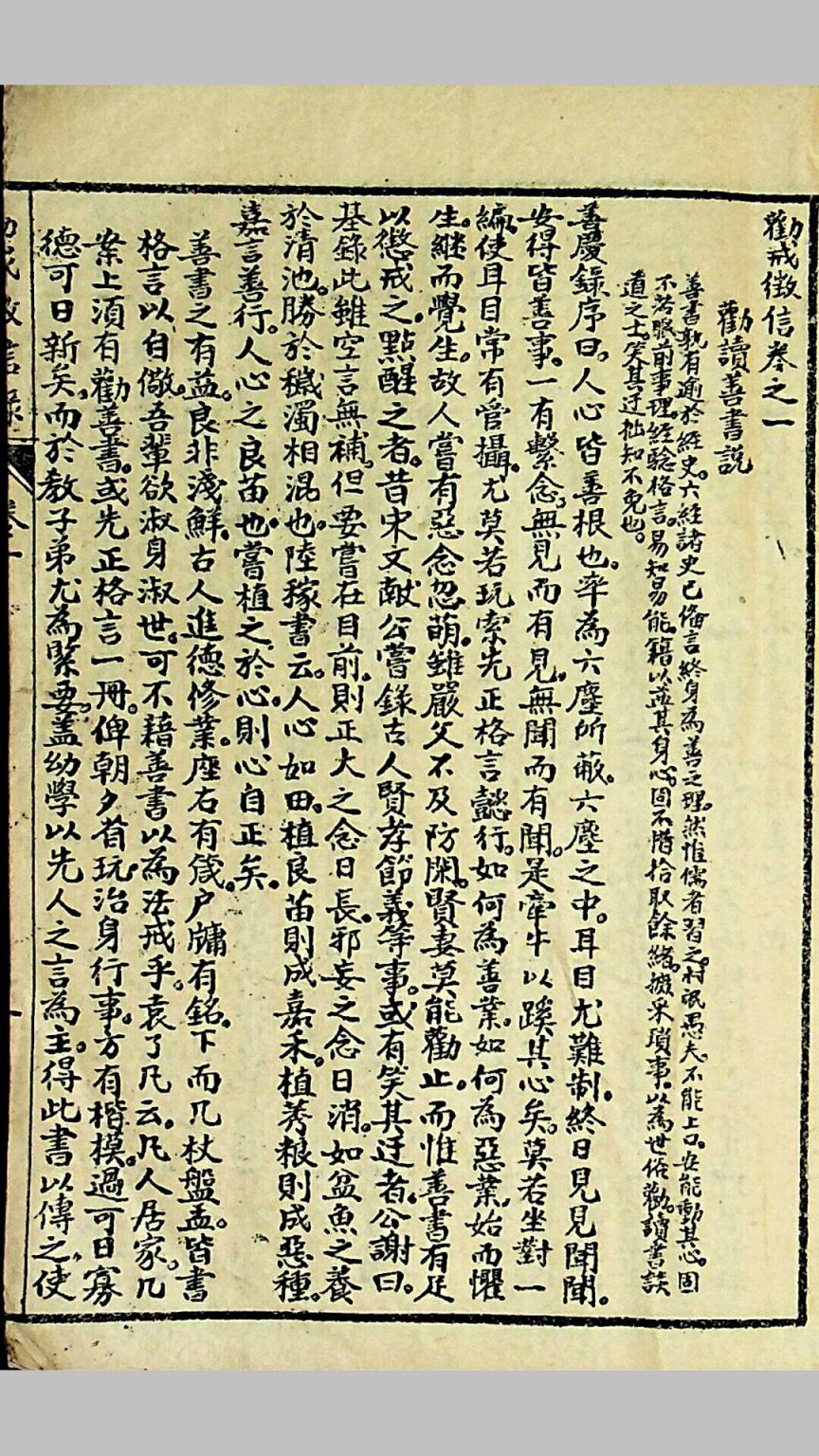 是编分五卷。卷首所录,皆先哲垂训教人之语。至理名言,雅俗共赏,持身涉世,所不能外。一切矫诬妄诞之说,概不敢登。