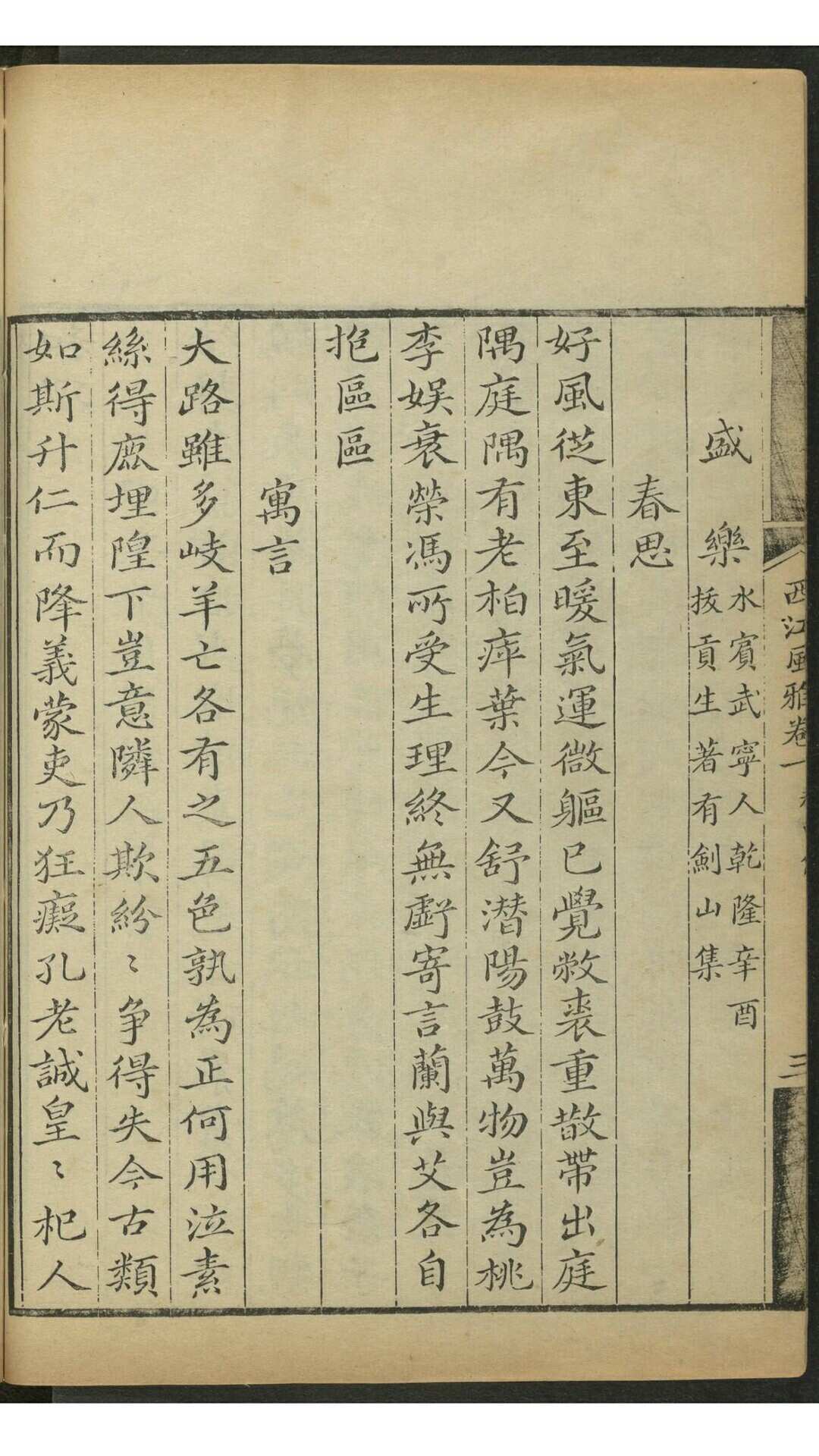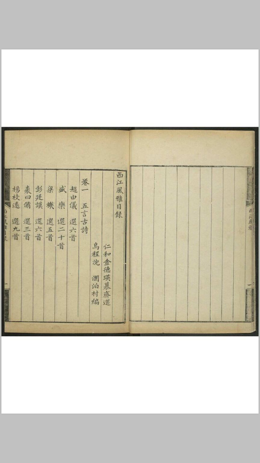 西江风雅 十二卷, 补编一卷 金德瑛选 沉澜编 清乾隆癸酉18年