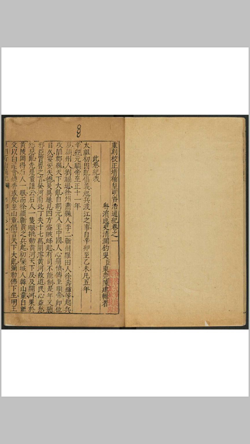 重刻校正皇明资治通纪 十卷 陈建辑著 , 明刊本