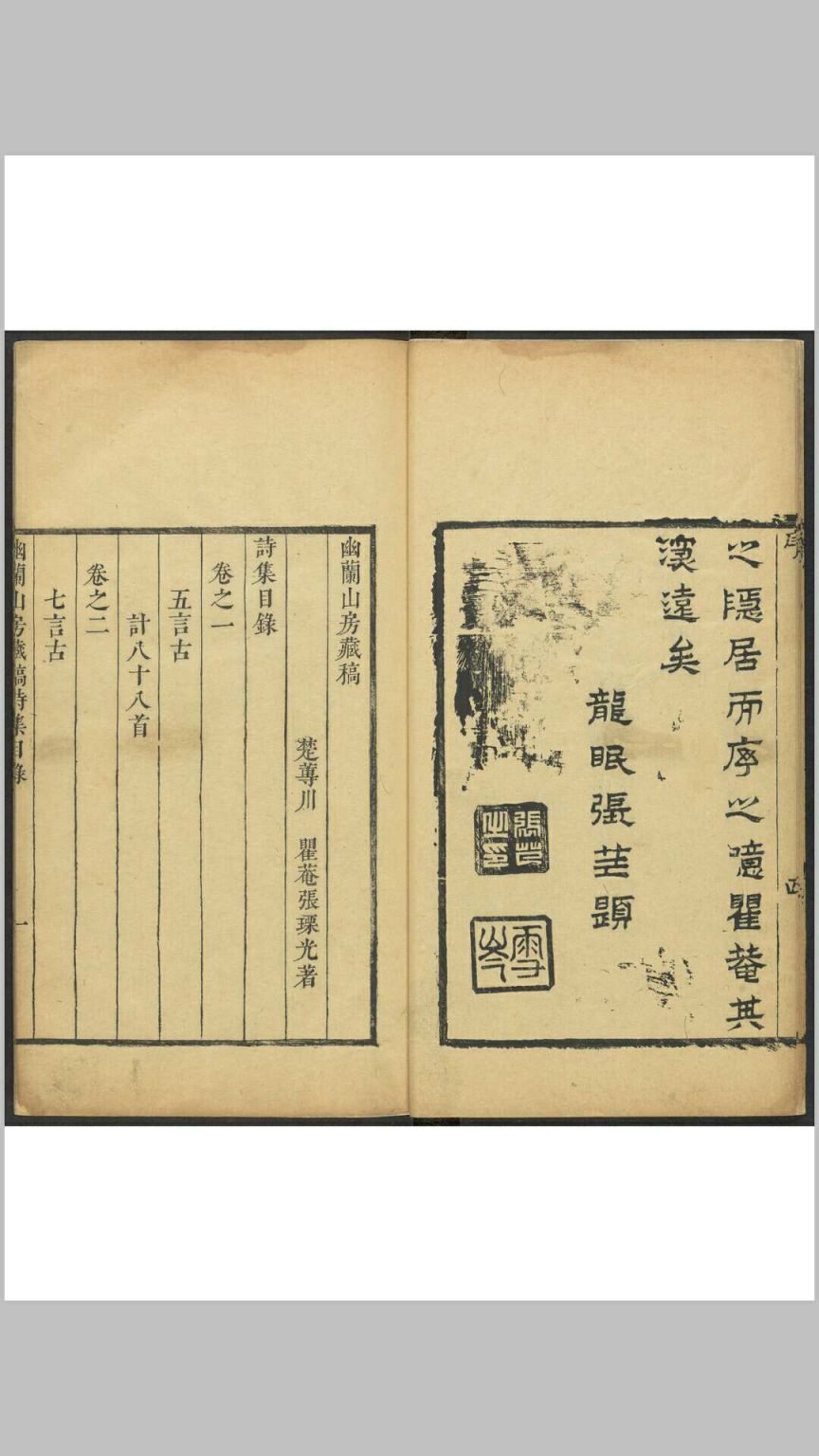 幽兰山房藏稿 诗集八卷, 常谈二卷 张瑮光撰