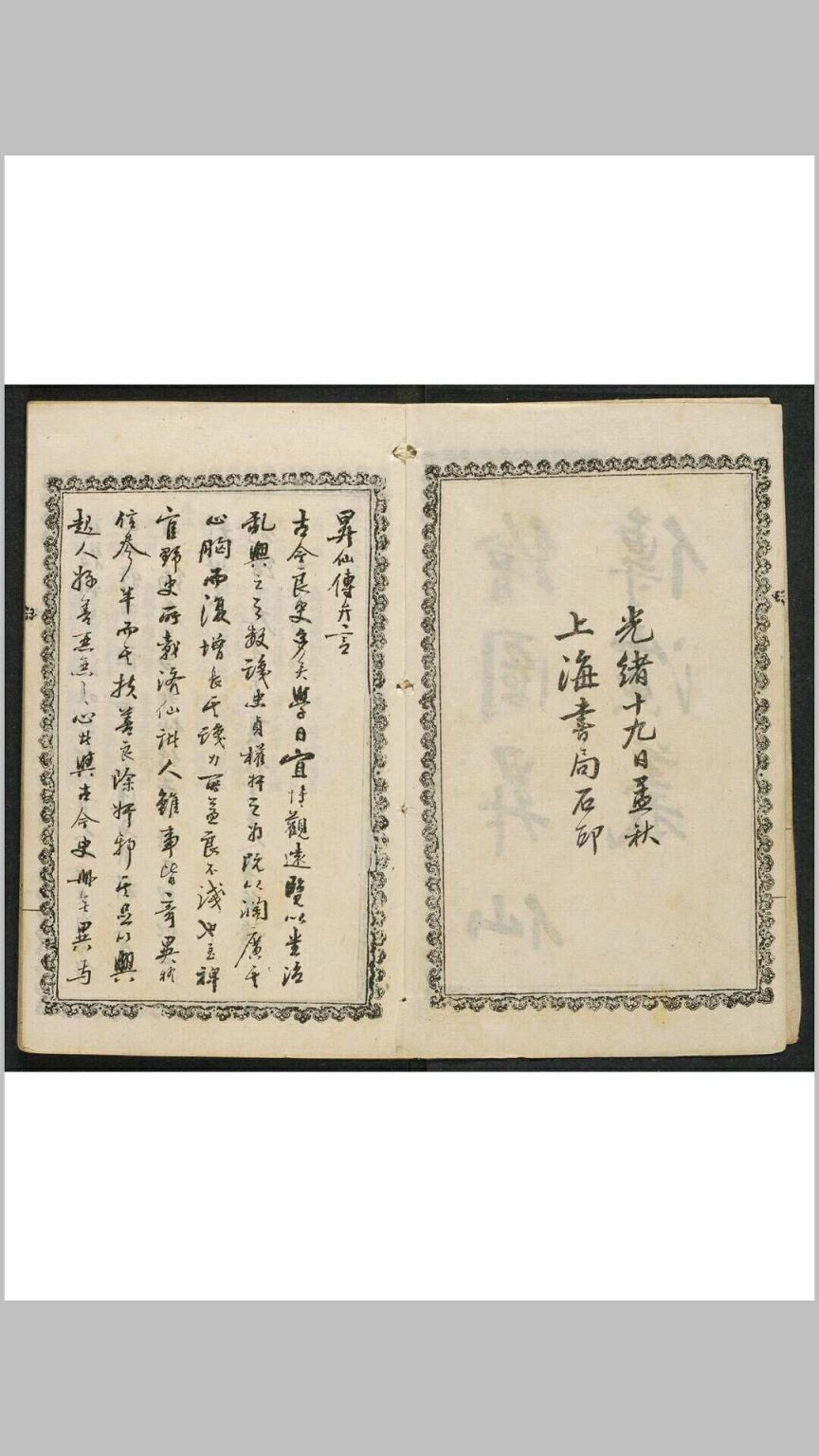 升仙传演义 八卷五十六回 倚云氏著 上海书局, 光绪十九年