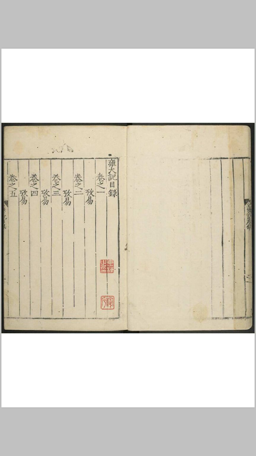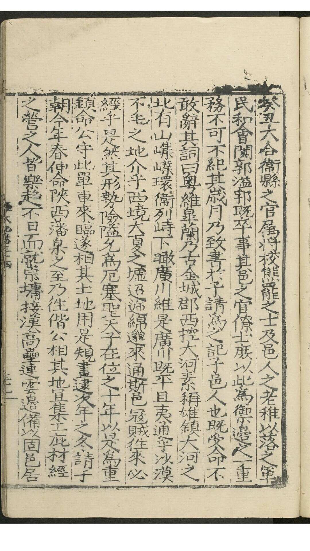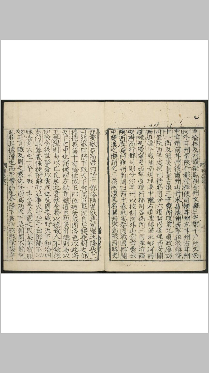 《雍大记》为明代何景明所纂修。共三十六卷。明嘉靖元年(1522年)刊刻。此书为何景明担任陕西提学副使时所修,当时为修陕西通志开局立例,他召集学官生徒分辑成此编。后因病去官,由佥(qiān)事周宗化摄学政续成之。卷首为序,卷一至卷八为考易,卷九至卷十三为考迹,卷十四至卷十八为纪运,卷十九至卷二十五为纪治,卷二十六至卷三十为志献,卷三十一至卷三十六志贲(bì)。记述范围为陕西关中,古称雍州,故名《雍大记》。清《四库全书总目提要》称其“嗜博务多”、“收入未免泛滥”,“改沿革志曰考易,改艺文志曰志贲,名目皆出臆创”。但此志于关中长安之事广为搜集,无所不载,具有重要的史料价值。