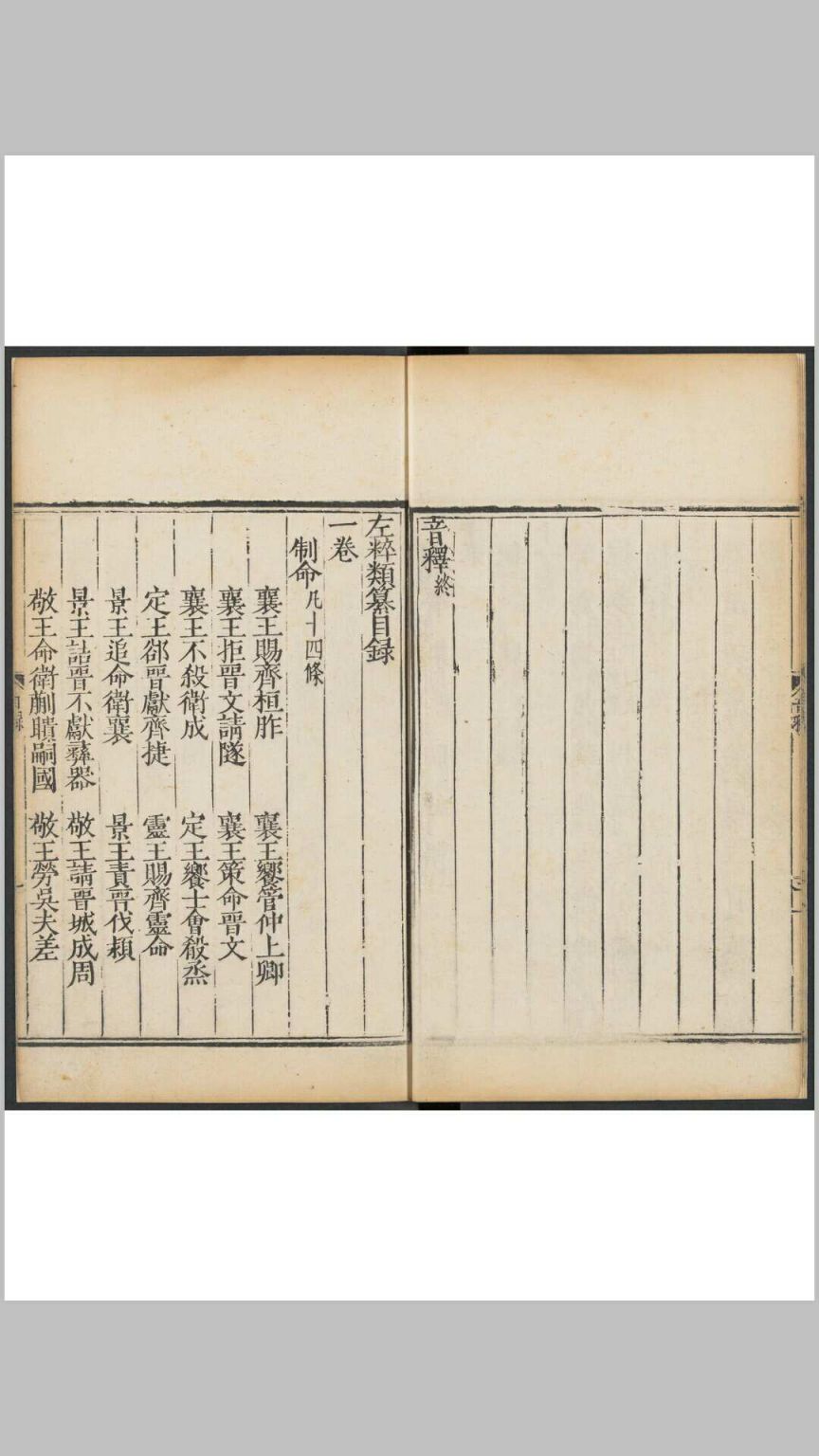 此书选录《左传》记事之精者,以类相从,编为十五门,故名《左粹类纂》。