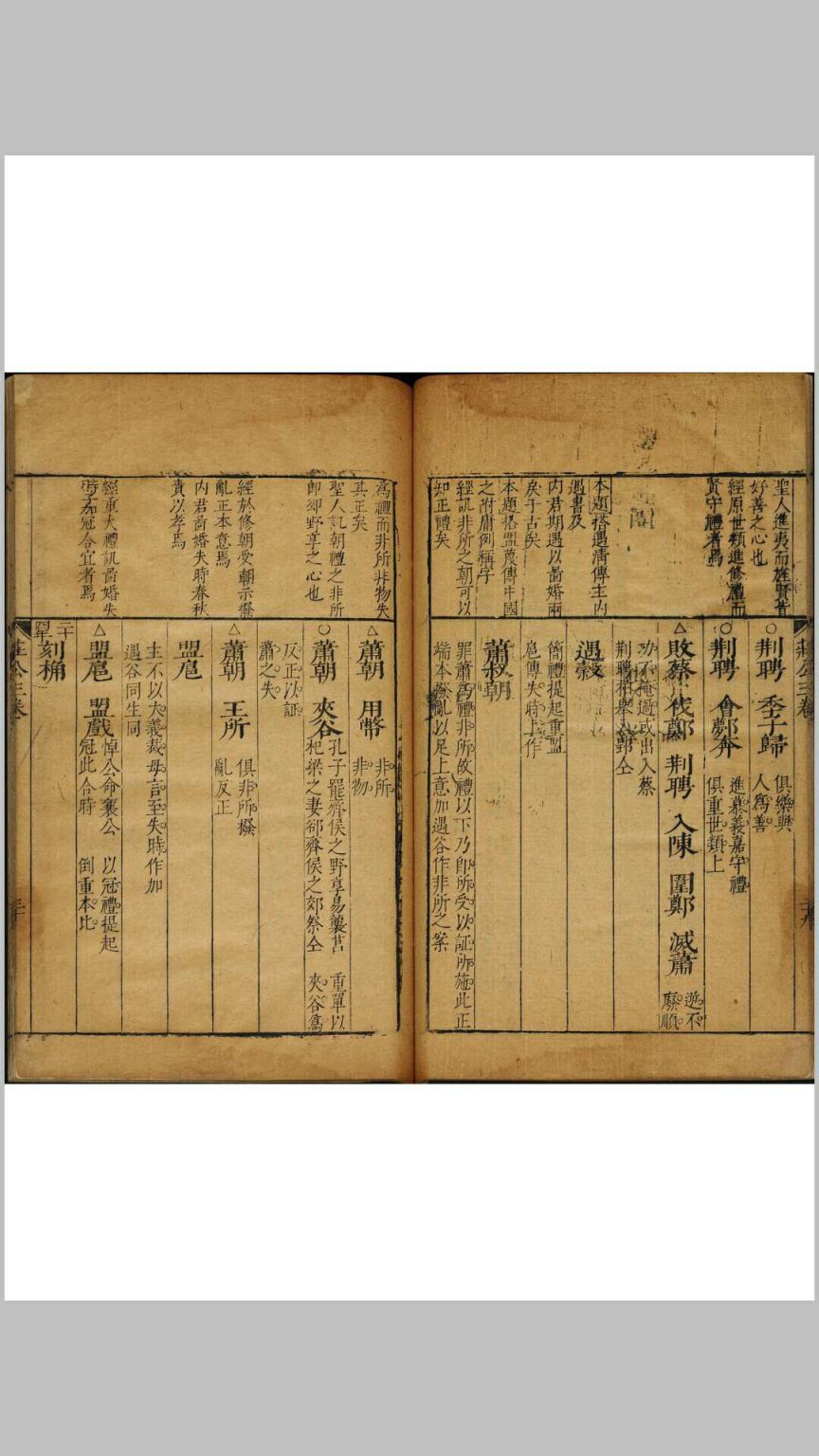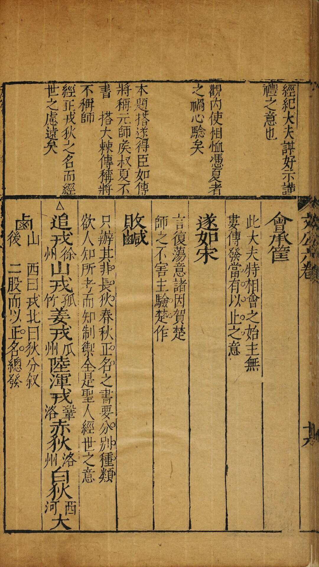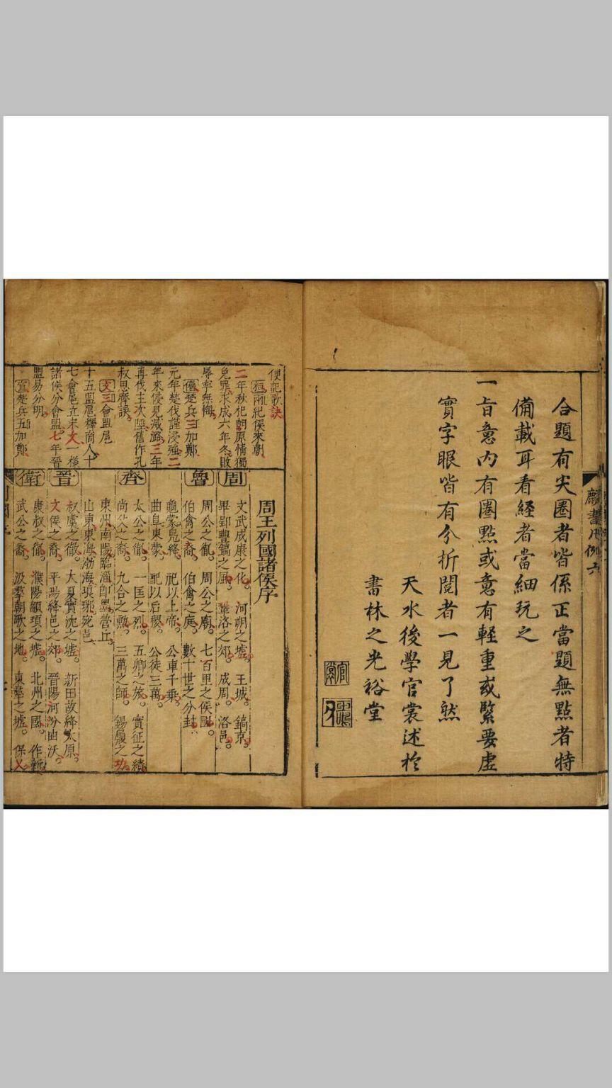 《春秋》又称《麟经》或《麟史》。麟书者,孔子以东迁而作。始于隐终于哀,绝笔于获麒麟之季,故谓之麟书。此《麟书捷旨》共12卷,官裳撰,文震孟校定。摘录《春秋》中精华部分并作注解(书眉上刻评)。此为明天启年间金陵李良臣刊刻本。