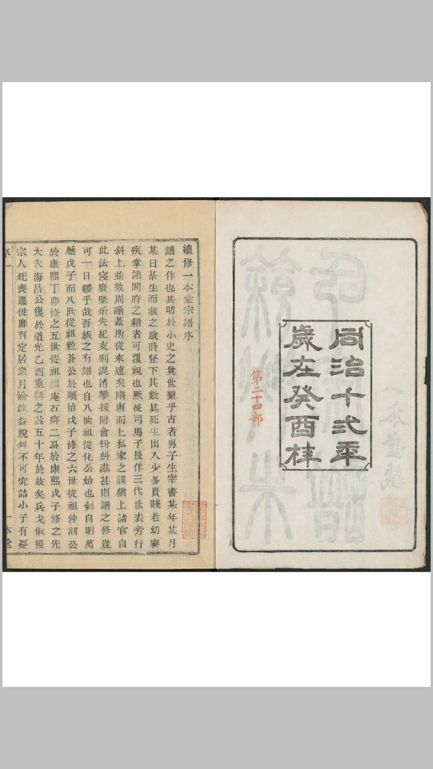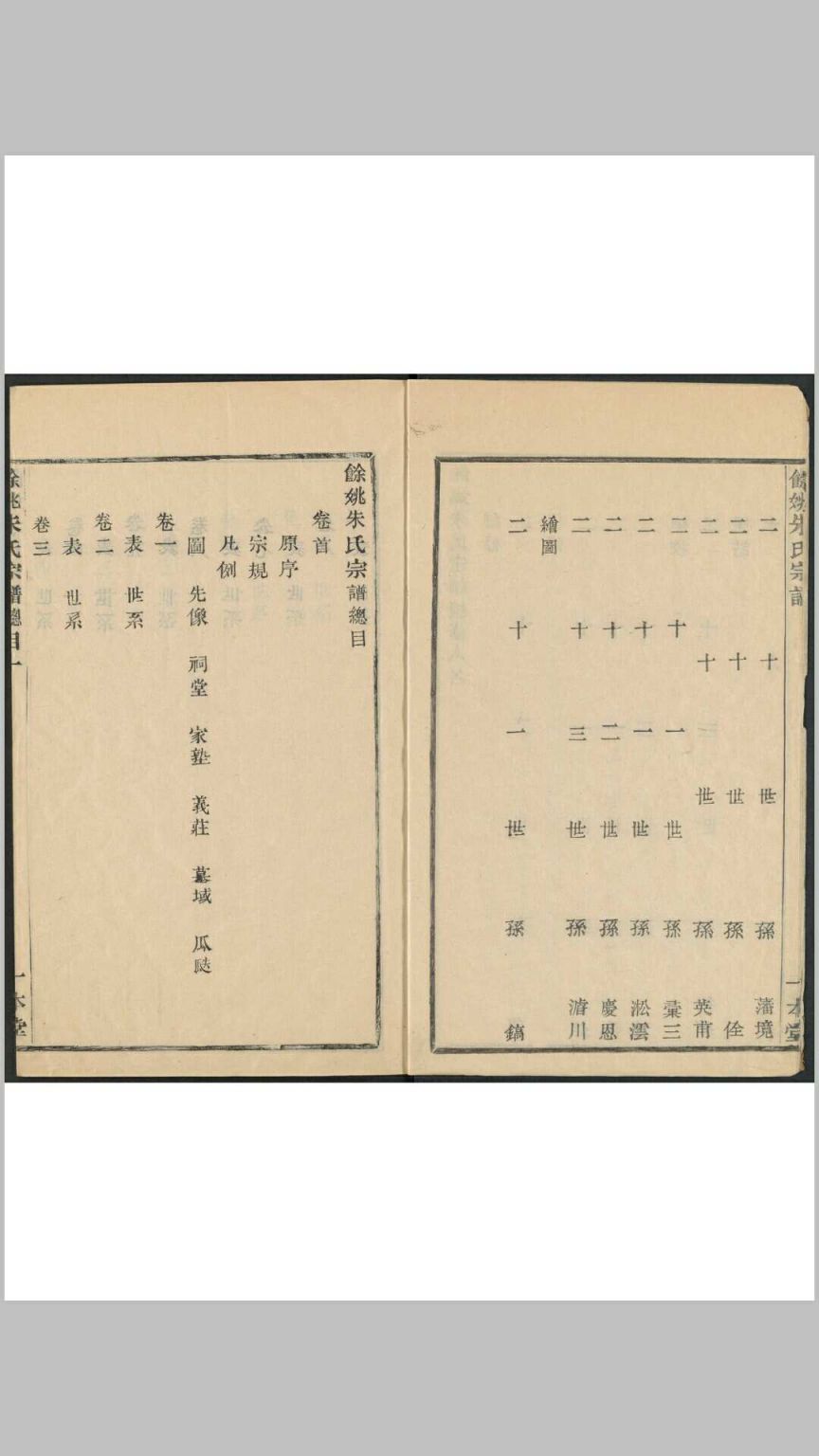 馀姚朱氏宗谱 十六卷, 卷首一卷. 馀姚朱氏一本堂, 清同治12年