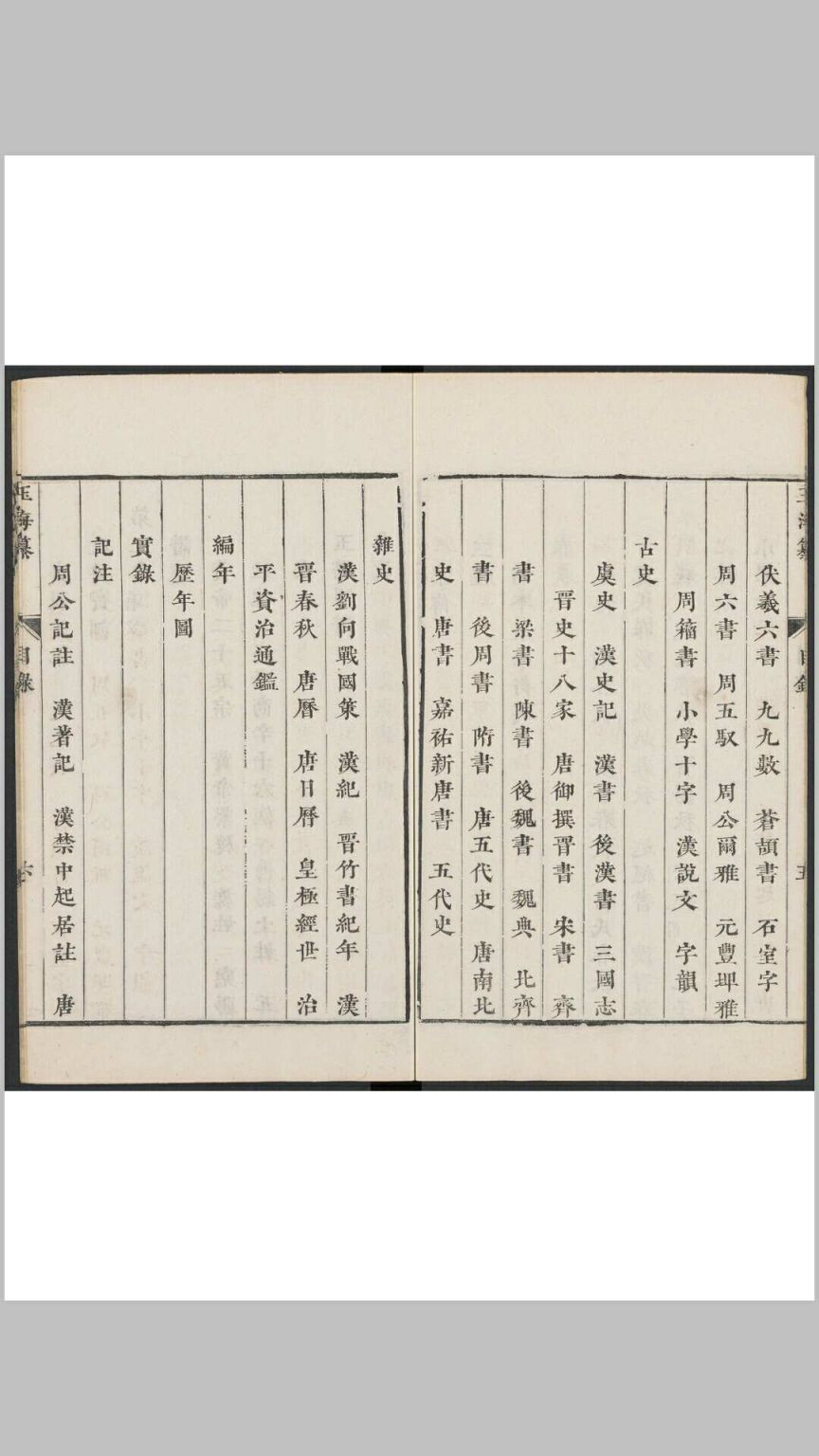 明刘鸿训编。鸿训字默成,长山人。万历癸丑进士,官至文渊阁大学士。事迹具《明史》本传。是编以王应麟《玉海》卷帙浩繁,因节录其要语,部分悉依原目,惟全删其《词学指南》一类。《词学指南》专为当时词科而设,删之亦可,至其全书,正以典核详赡为长。《鸿训》删存十之一二,遂变为记诵剽窃之本,非著书之初指矣。