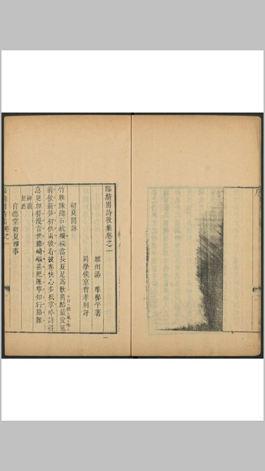 汤凖. 临漪园诗后集 四卷, 偶存一卷, 文集三卷