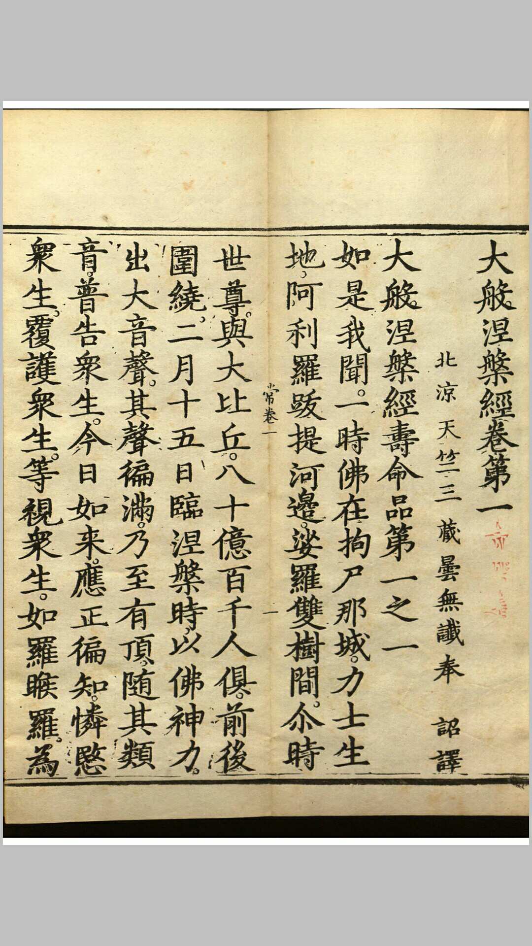 大般涅槃经(梵Mahāparinirvāna-sūtra)汉语拼音dà bō niè pán jīng佛教经典。亦称《大本涅槃经》或《大涅槃经》,简称《涅槃经》。北凉昙无谶译。40卷。