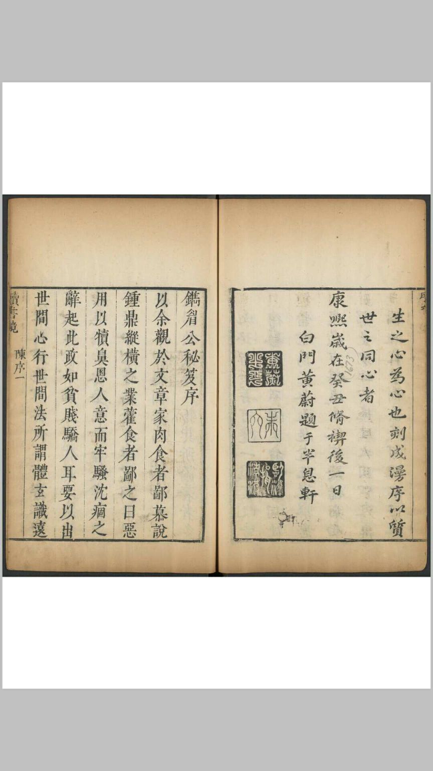 陈继儒. 镜非合刻 二种. 清康熙12年