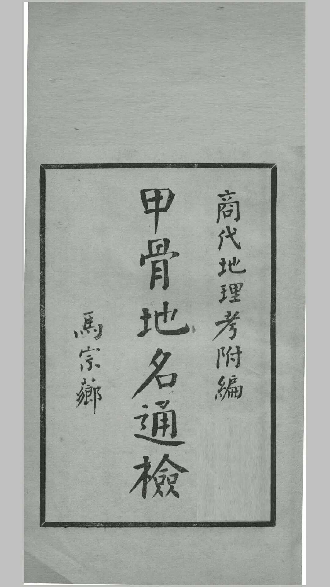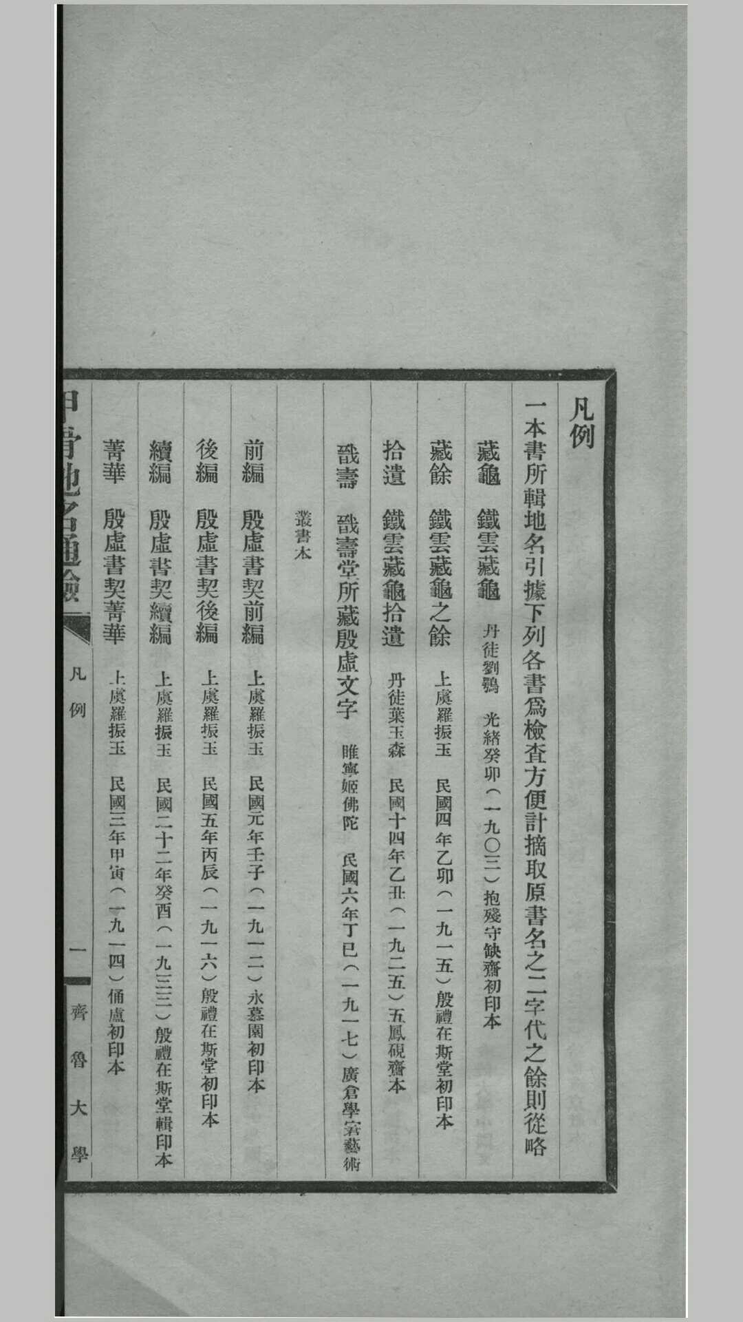 【参考文献格式】 (民国)曾毅公撰. 甲骨地名通检. 齐鲁大学国学研究所, 1939.