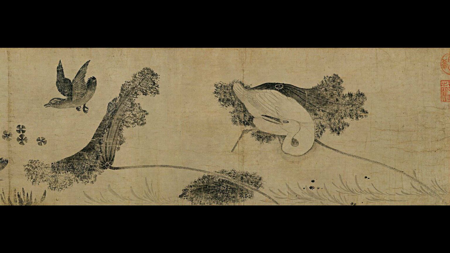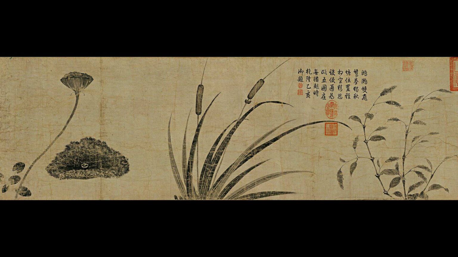 宋徽宗 赵佶 池塘秋晚图卷纸本