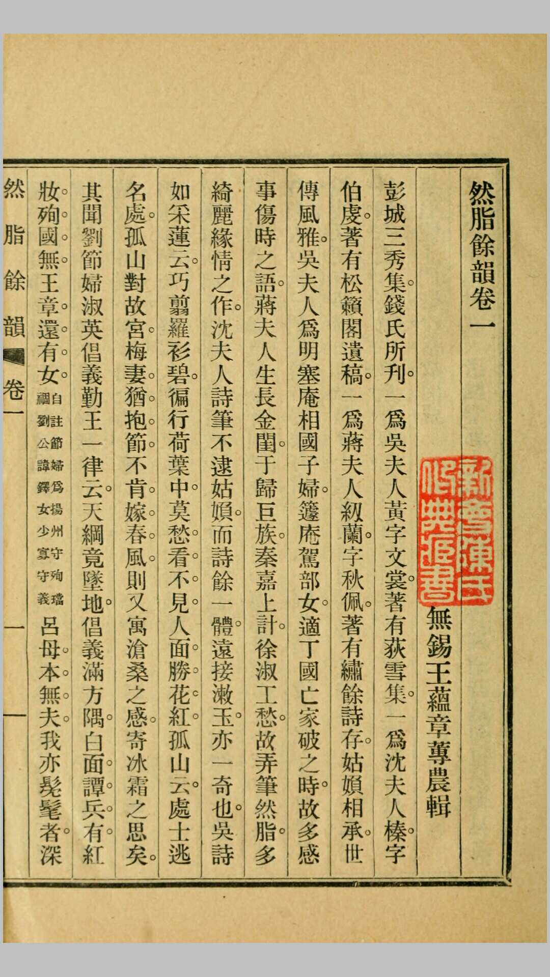 然脂余韵6卷.王蕴章撰.民国14年商务印书馆铅印本
