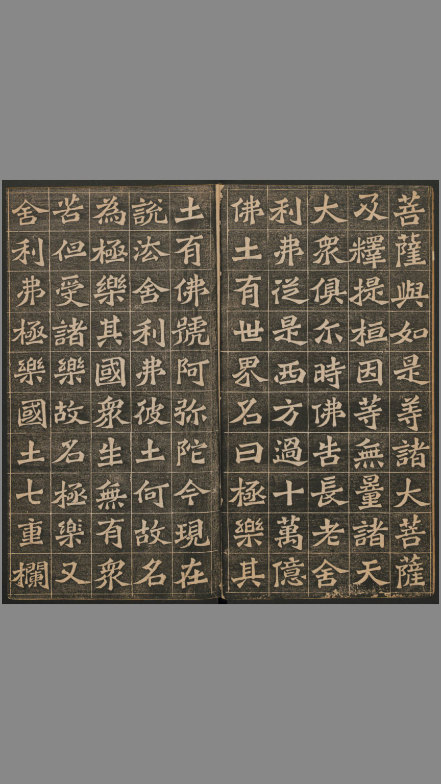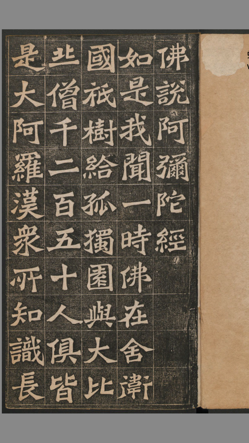 王代功书《佛说阿弥陀经》,哈佛燕京图书馆藏拓片,光绪十八年拓本,王闿运书跋。 《佛说阿弥陀经》:大乘佛教经典之一,为净土宗所尊崇,被列为净土三经之一。此经为佛经中极少数非由佛陀弟子提问,而由佛陀不问自说的经典。